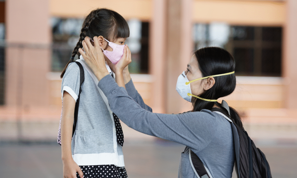แพทย์ผู้เชี่ยวชาญแนะนำว่า คุณพ่อคุณแม่ควรป้องกันด้วยการ “หลีกเลี่ยงกิจกรรมนอกบ้านในวันที่ค่า AQI สูง” หมั่นเช็กค่าฝุ่นผ่านแอปฯ ตรวจอากาศ และเปิดเครื่องฟอกอากาศในบ้าน โดยเฉพาะห้องนอนของเด็กเล็ก