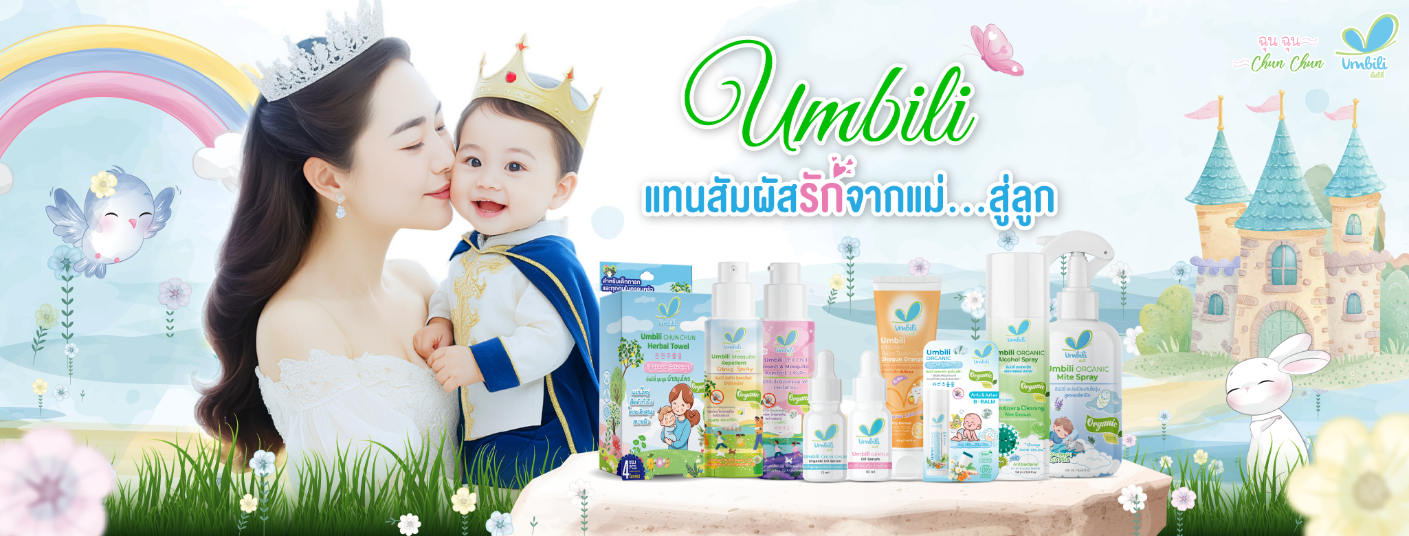 จากแนวคิดนี้จึงได้ถือกำเนิดแบรนด์ Umbili และเปิดตัวผลิตภัณฑ์แรกคือ “อัมบิลี่ ฉุนฉุน ออร์แกนิก หอมแดง เซรั่ม” (Umbili Chun Chun Organic Oil Serum) ผลิตภัณฑ์ที่ช่วยให้ลูกน้อยรู้สึกผ่อนคลายและนอนหลับสบายในยามค่ำคืน